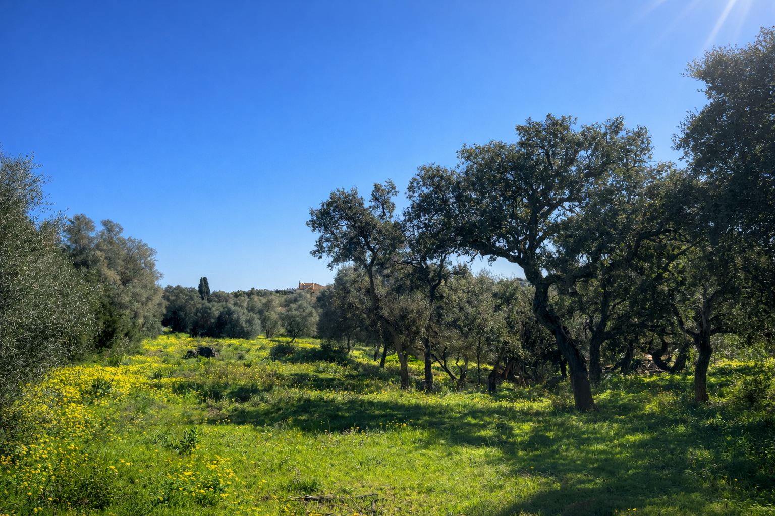 Framed by mature cork and olive trees, the property offers remarkable privacy and a serene natural setting. A cortijo-inspired villa project is currently in the conceptual phase, designed to capture the timeless charm of the Andalusian countryside while incorporating refined contemporary yet timeless interiors.