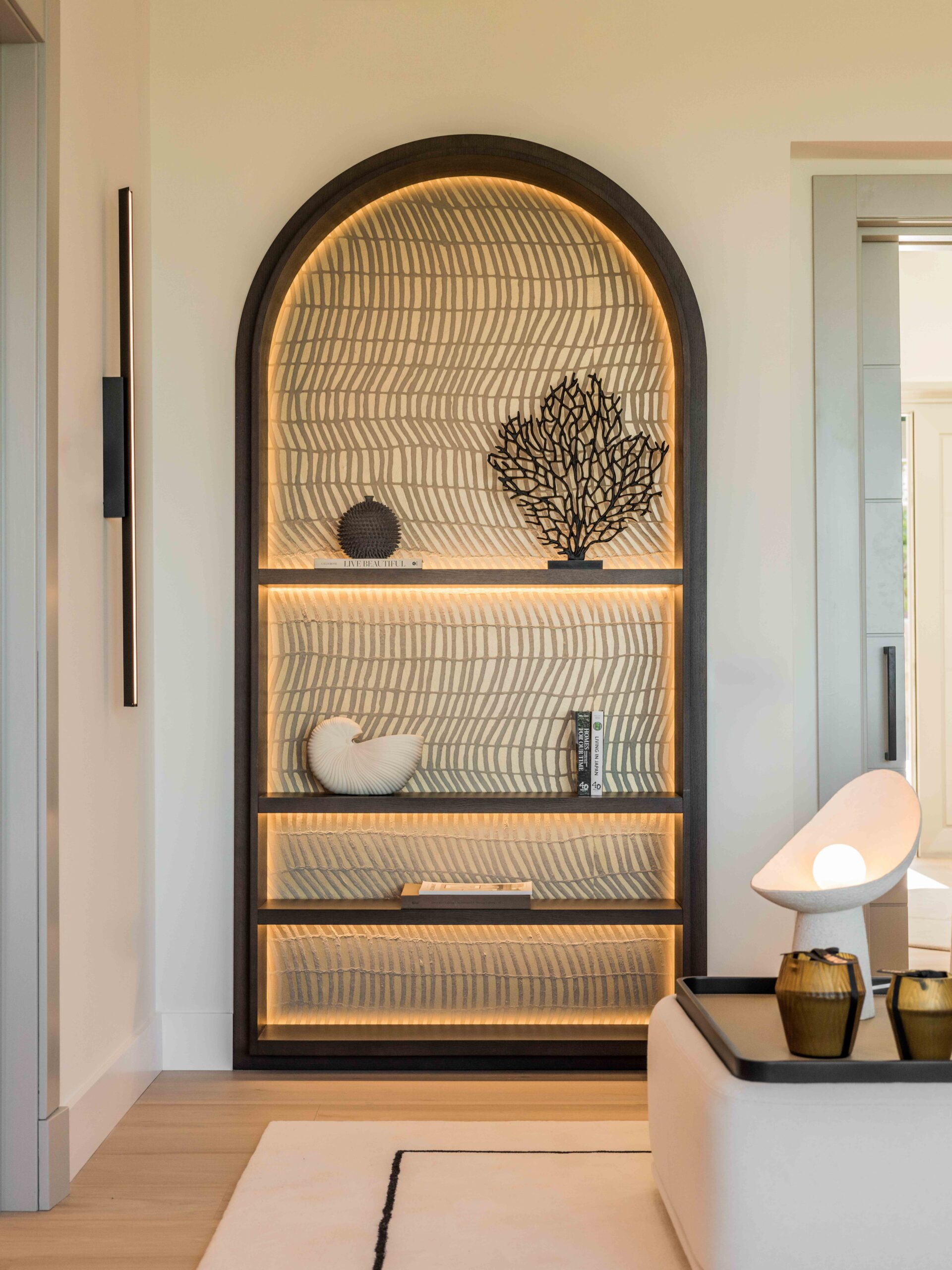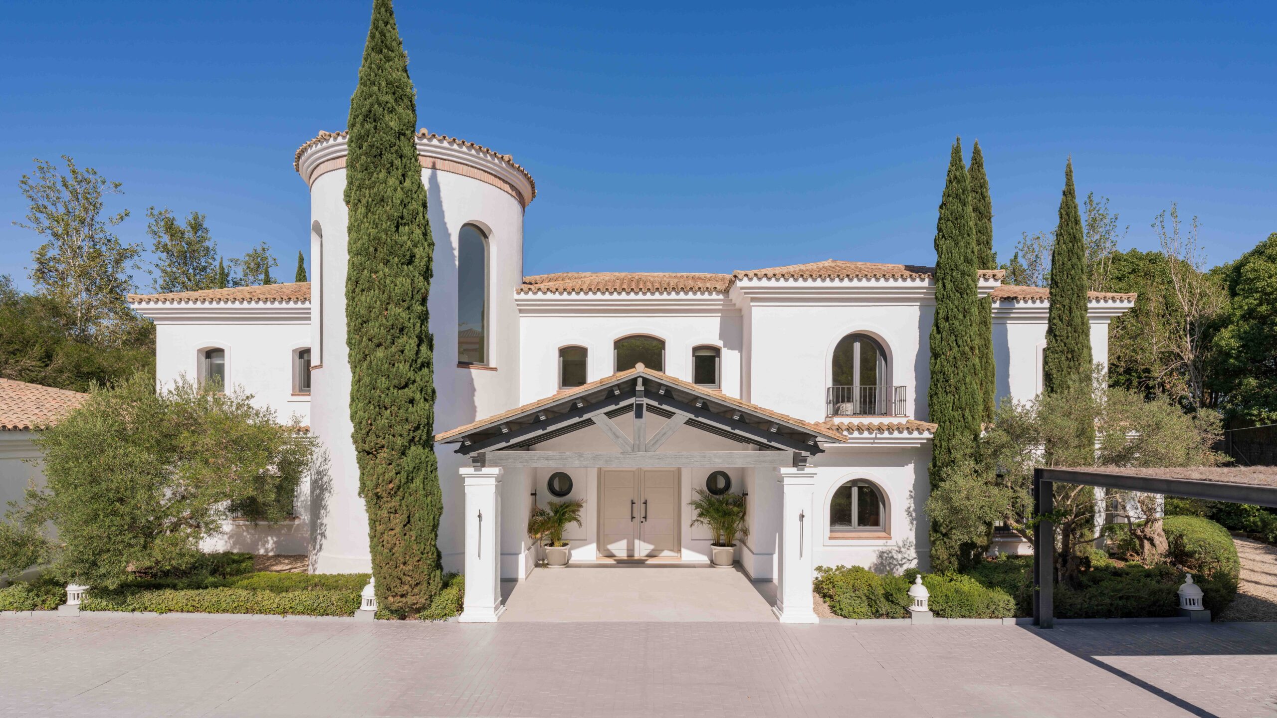 The interior design was carefully curated in collaboration with the renowned design house Ambience Home Design, aiming of preserving the villa’s timeless Andalusian character on the exterior while creating a contemporary yet warm and inviting interior. Natural oak flooring, walnut detailing, and marble finishes were paired with high wooden ceilings to bring depth, warmth, and texture to the spaces. Carefully selected furniture and lighting complemented the architectural language while maintaining a refined and understated aesthetic.