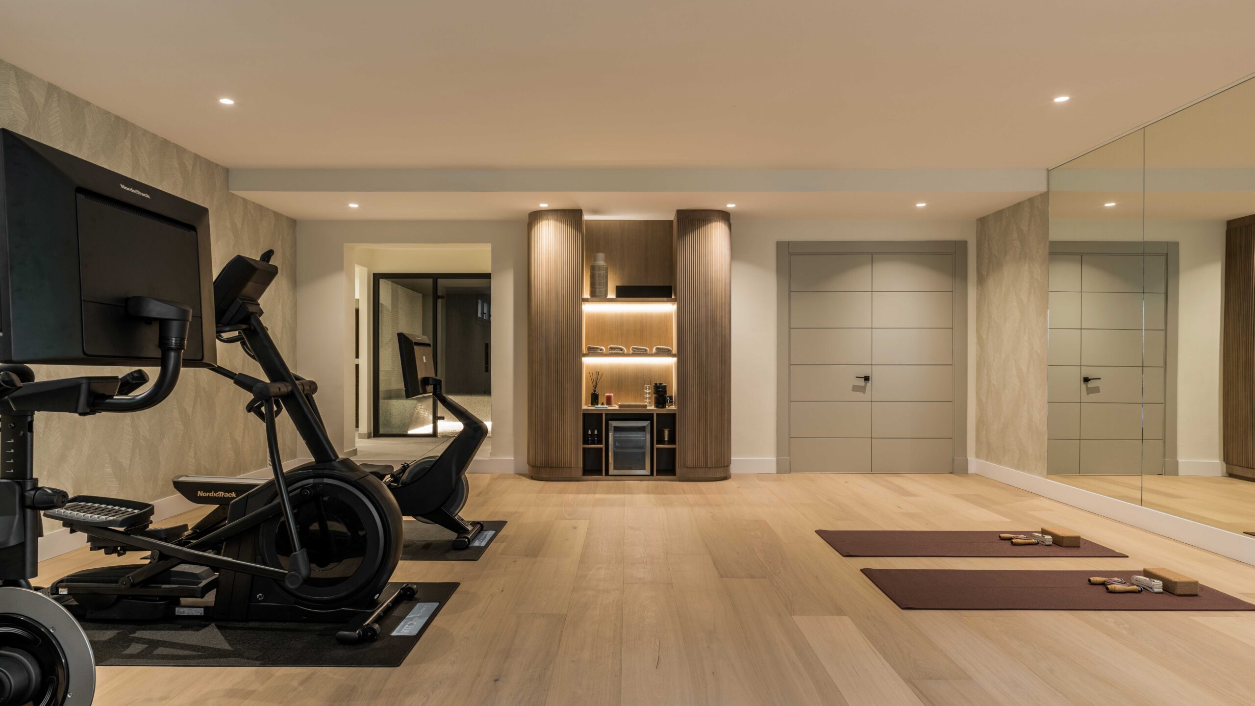 The property was designed for both comfort and wellbeing, featuring a heated swimming pool set within landscaped gardens, a private gym, and a spa with hammam and sauna. A poolside guest cottage with bathroom and outdoor kitchen provides an additional space for relaxation and entertaining.